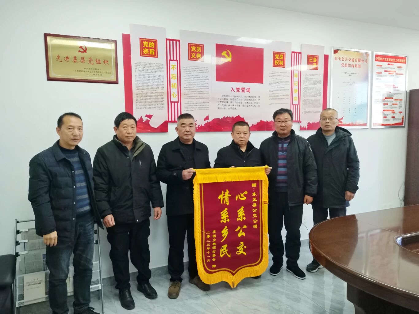 2025年11月25日上午,安徽省池州市東至縣花園鄉(xiāng)桃源村委會(huì)支書一行專程來到東至公交公司,送上了一面印有“心系公交 情系鄉(xiāng)民”的錦旗,以此表達(dá)對(duì)公司多年來堅(jiān)持運(yùn)營(yíng)縣城至桃源村公交線路的誠(chéng)摯謝意。