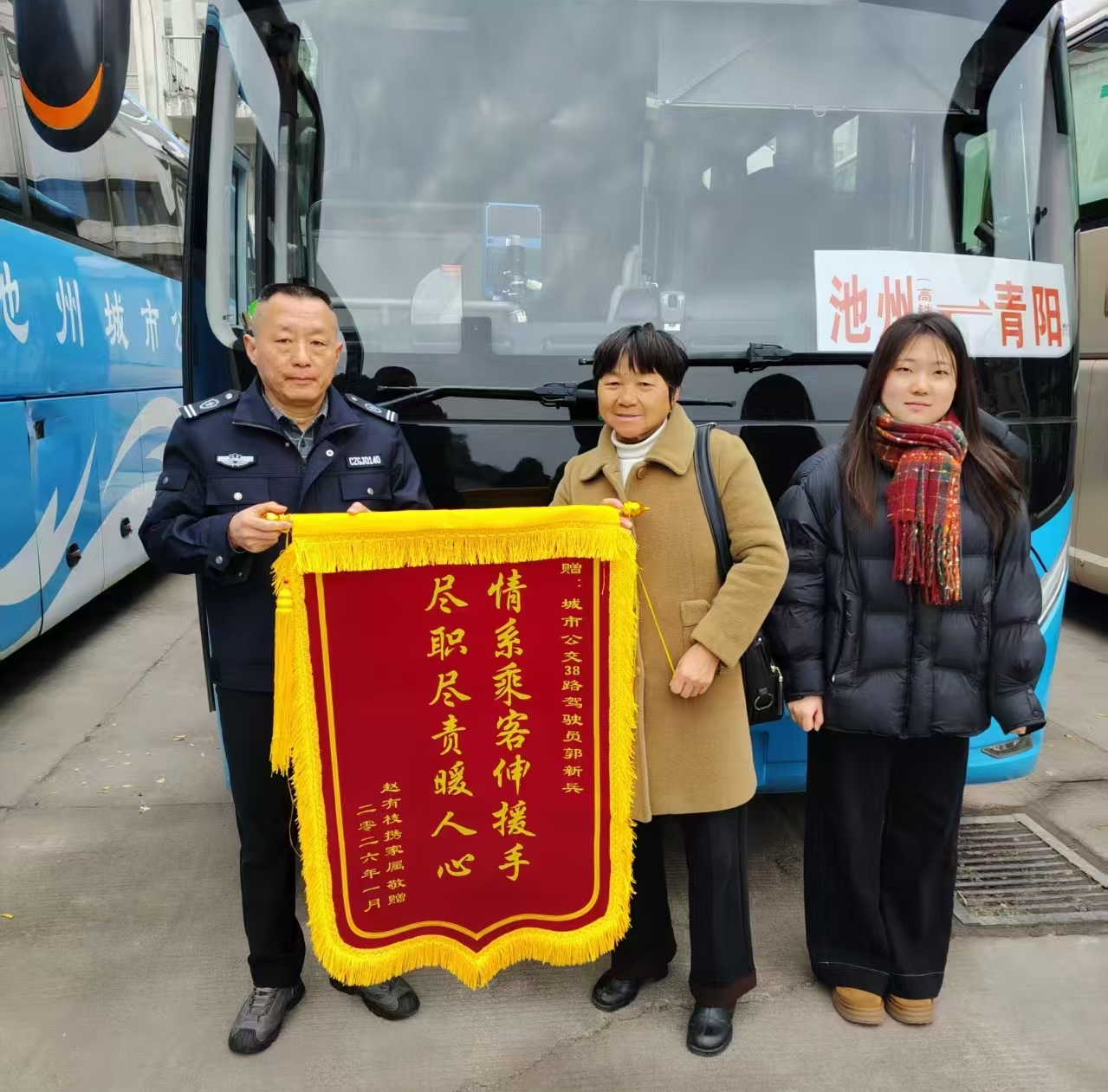 2026年1月14日下午,38路駕駛員郭新兵如往常一樣執(zhí)行從火車站開往青陽汽車中心站的班次。行駛至馬衙中學附近時,車廂內傳來乘客急切的求助聲——一名中年女乘客突發(fā)身體不適。郭師傅當即判斷需立即尋求專業(yè)幫助,第一時間駕車前往附近的馬衙派出所,同時向公司安全部報備情況,并緊急撥打120急救電話。郭師傅全程陪同,積極配合現(xiàn)場民警工作,直至醫(yī)護人員完成檢查。萬幸的是,經(jīng)醫(yī)護人員初步診斷,乘客身體已趨于穩(wěn)定,無需進一步就醫(yī)。妥善安置好乘客、確認無異常后,郭師傅才重新啟動車輛,恢復正常運營,全程未耽誤其他乘客的出行。