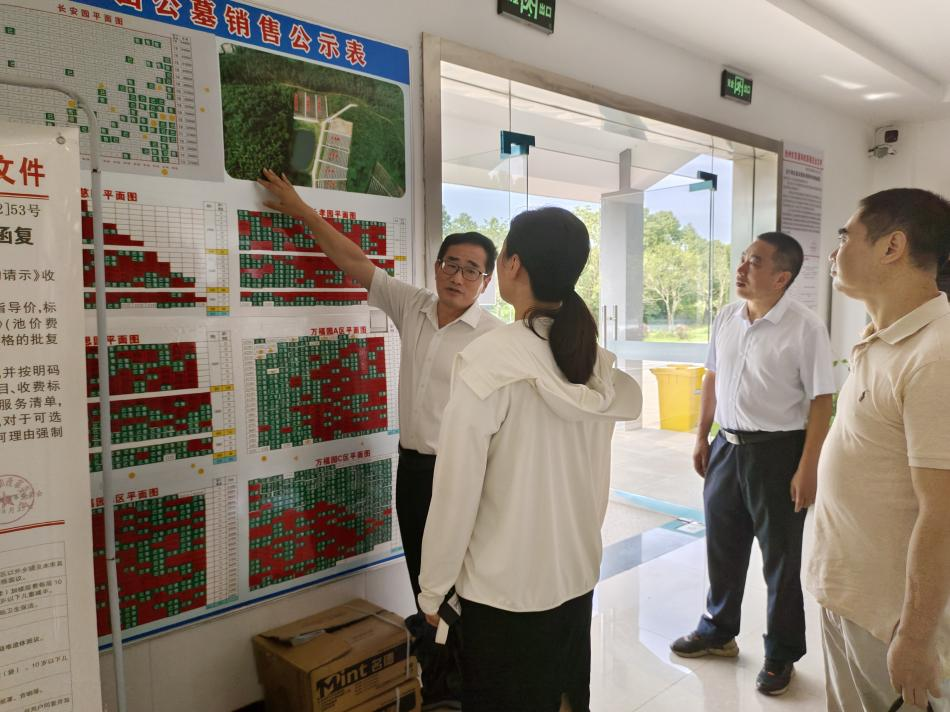 朱蕓蕓一行先后參觀了生態(tài)人文公司服務(wù)接待大廳、公墓銷售公示欄,聽取了生態(tài)人文公司目前安全生產(chǎn)、服務(wù)經(jīng)營等方面工作匯報(bào),并實(shí)地察看了池州生態(tài)人文紀(jì)念園項(xiàng)目施工現(xiàn)場,深入了解了園區(qū)規(guī)劃、公益性墓區(qū)、骨灰堂等工程建設(shè)相關(guān)情況。