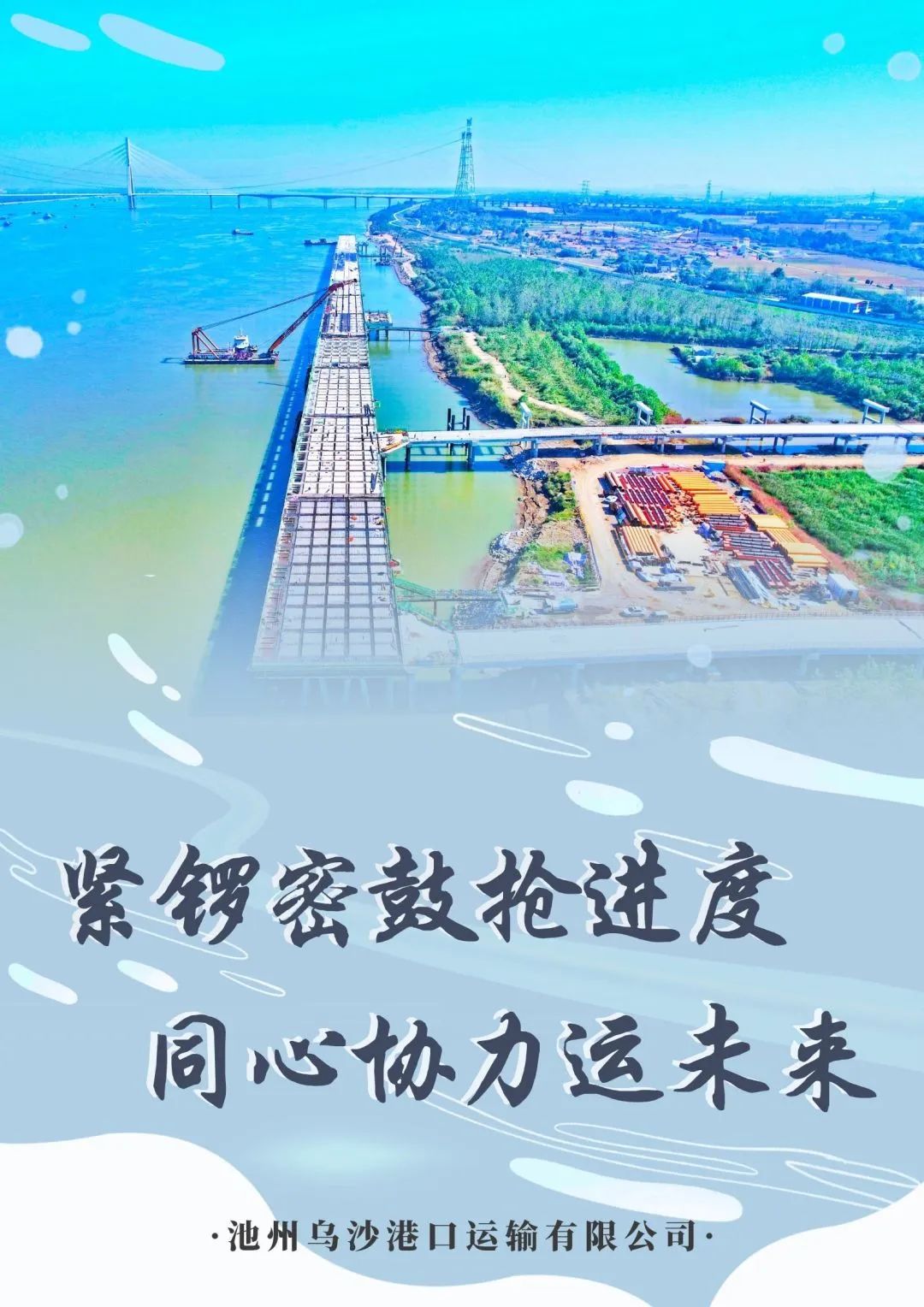 池州港烏沙港區(qū)公用碼頭項(xiàng)目系市投控集團(tuán)重點(diǎn)投資項(xiàng)目,也是我市重大公用港口基礎(chǔ)設(shè)施建設(shè)項(xiàng)目,現(xiàn)在正處建設(shè)期。截至目前,水域部分(碼頭工程、引橋工程和防洪影響處理工程)已完成產(chǎn)值約2.4億元,陸域部分征遷工作已完成征遷總量的95%,設(shè)備采購(gòu)、融資工作正有條不紊地推進(jìn)中。下一步,池州烏沙港口運(yùn)輸有限公司將錨定目標(biāo),緊扣節(jié)點(diǎn),高質(zhì)高效如期完成烏沙港區(qū)公用碼頭項(xiàng)目建設(shè),為2024年預(yù)投產(chǎn)打下堅(jiān)實(shí)基礎(chǔ)。