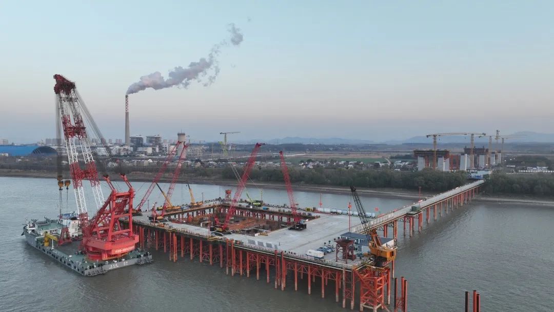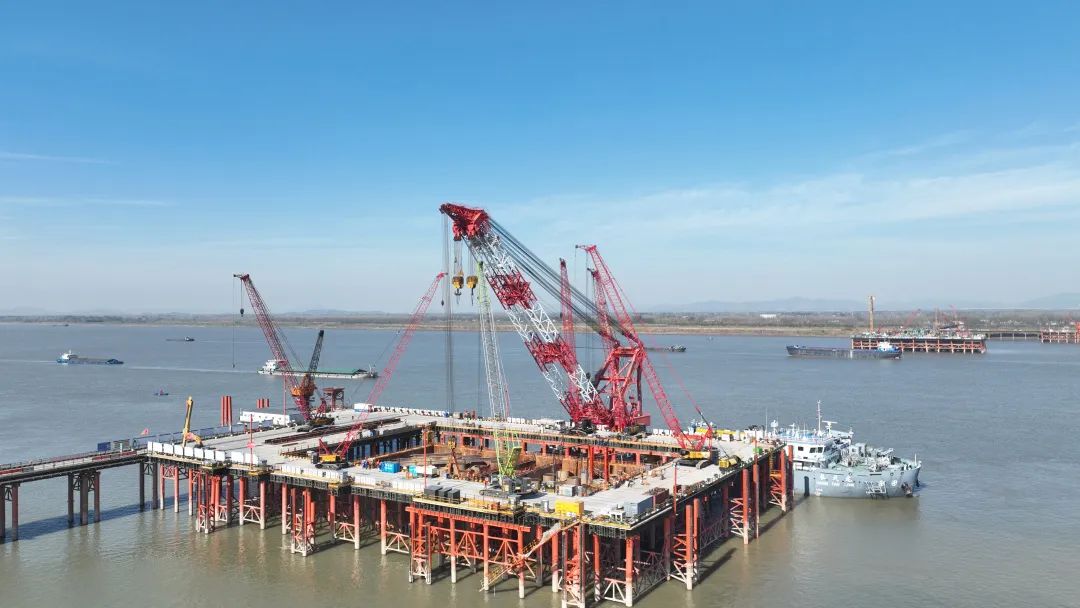 12月26日下午,在長江池州段離南岸大堤約380米處的江中施工點,隨著池州長江公鐵大橋4號墩圍堰內(nèi)最后一方封底混凝土的灌入,由集團(tuán)承建的池州長江公鐵大橋4號主墩圍堰封底順利完成,標(biāo)志著池州長江公鐵大橋即將進(jìn)入主墩承臺施工階段,為池州長江公鐵大橋主塔施工打下堅實基礎(chǔ)。