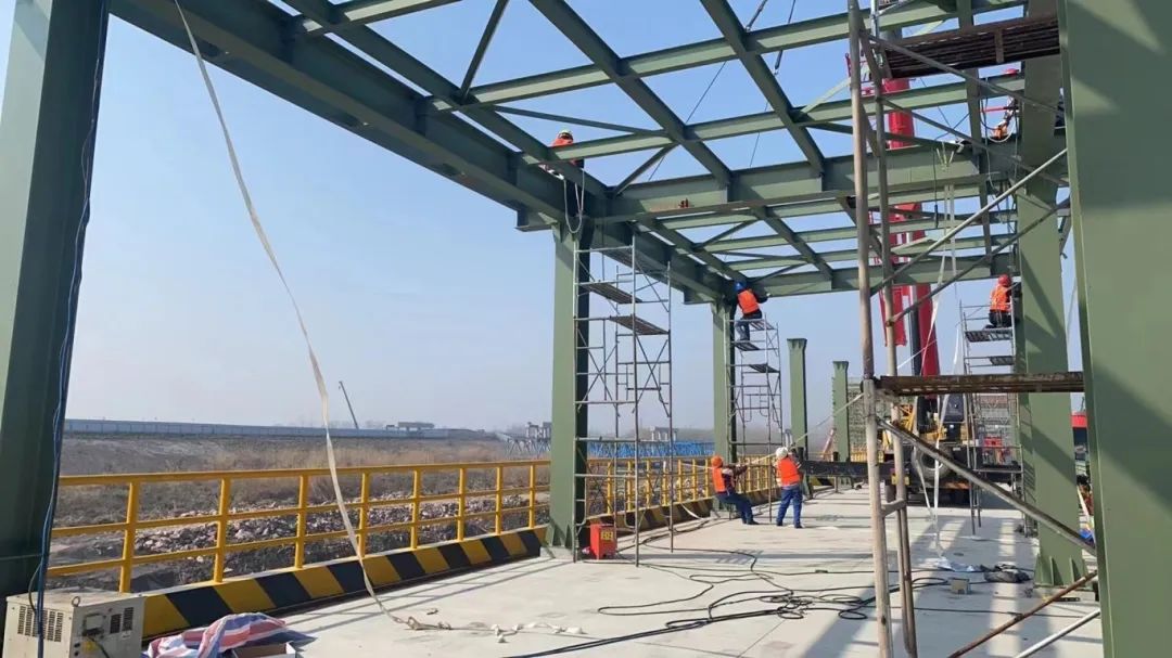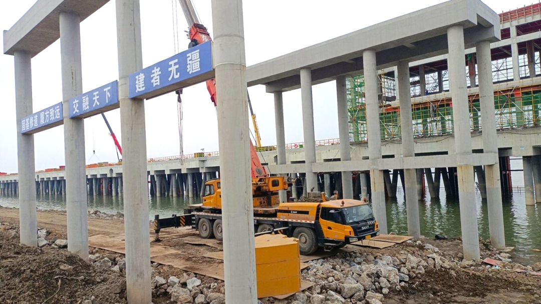 截至目前,項(xiàng)目水域部分碼頭平臺(tái)面層、兩座汽車引橋已全部澆筑完成,項(xiàng)目整體進(jìn)度已完成約83%,碼頭工程主體結(jié)構(gòu)與房建工程主體結(jié)構(gòu)已全部施工完成,正在進(jìn)行碼頭前沿鋼結(jié)構(gòu)安裝、裝船機(jī)焊接打磨進(jìn)行拼焊、房建工程進(jìn)行內(nèi)部砌墻、鋼引橋吊裝、水域部分進(jìn)行系纜欄桿安裝、橡膠護(hù)舷安裝、鋼軌安裝。碼頭陸域部分已進(jìn)場(chǎng)工作,臨時(shí)道路及部分場(chǎng)地硬化已完成,正在進(jìn)行B2轉(zhuǎn)運(yùn)樓及管理用房區(qū)域內(nèi)基礎(chǔ)施工,水泥攪拌樁已開展工作。