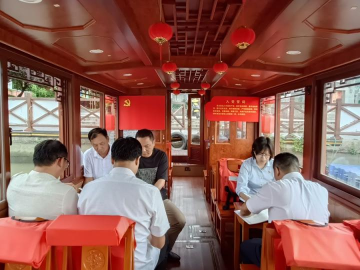 孝肅街置業(yè)有限公司支部全體黨員走進清溪河“紅船”,圍繞支部黨建品牌“孝肅先鋒,紅船領航”開展黨紀教育學習。此次黨紀教育學習選擇在“紅船”舉行,是讓支部全體黨員切身感受“紅船”精神和革命先輩的初心和使命,激發(fā)全體黨員更加深刻領會黨紀的精神實質(zhì)和核心要義。學習活動結束后,支部全體黨員全體起立,面對黨旗重溫了入黨誓詞。大家紛紛表示“紅船精神”是中國革命精神之源,要堅定理想信念,為公司高質(zhì)量發(fā)展做出應有的貢獻。